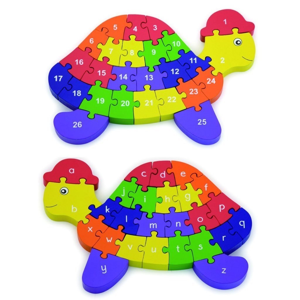 Rompecabezas 3D Tortuga de Madera. 2 en 1: abecedario y números – Madera